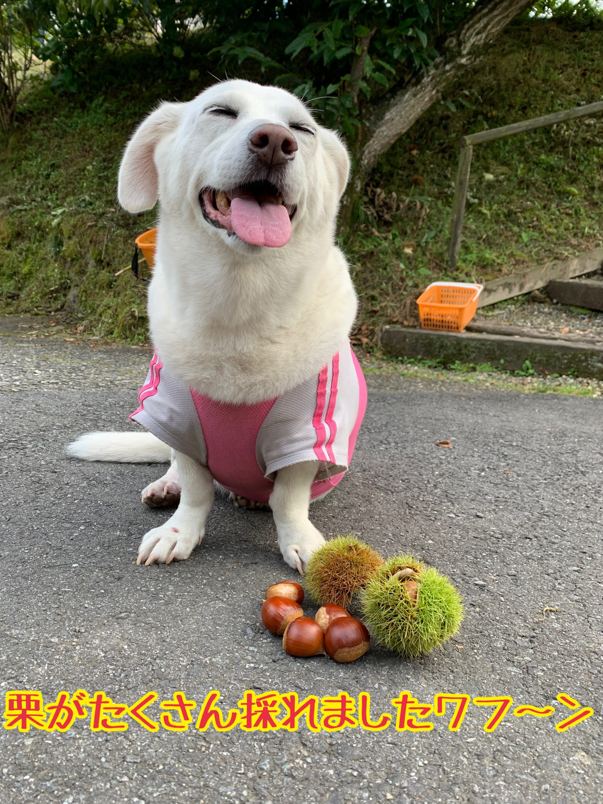 湧水場の横に栗の木がありますが、たくさんの実ができましたワフ~ン 🙂